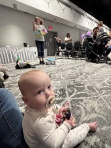 Over the last couple of weeks, my major learning project has continued to grow in the best way possible. I was fortunate enough to attend another Sing & Sign session led by Jess, the owner of Stay ‘n’ Play Parenting. This one took place at the Bump, Babe, and Beyond Expo at the Conexus Arts Centre here in Regina where my wife was working at one of the booths! It worked out perfectly as I was able to join in the class with our daughter, Blakely. The theme that day was animals, and it was such a fun, hands-on learning experience. We sang, signed, and played together while learning new ASL signs such as dog, cat, bird, cow, horse, sheep and elephant. I was amazed at how naturally Jess ties signs into music and movement; it made learning feel effortless and memorable. It was also just so special to share that experience as a family.